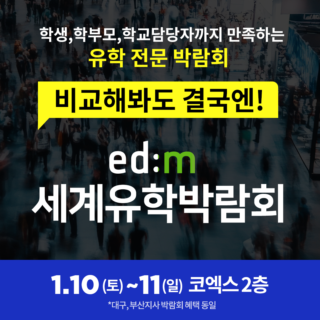 2026년 새해 첫 개최! 국내 최대 edm 세계유학박람회 (코엑스 2층) 사전신청 안내