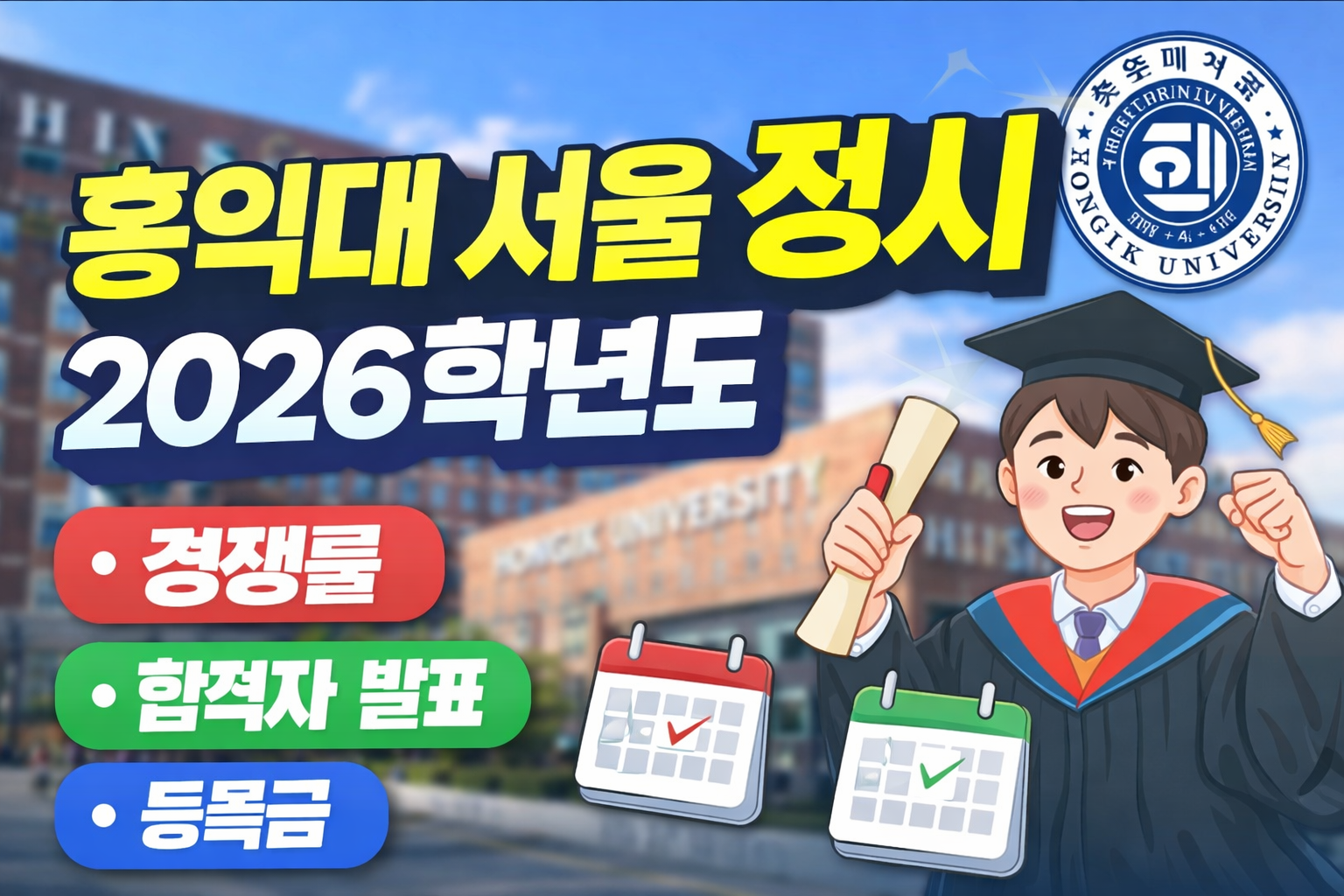 홍익대학교 서울캠퍼스는 2025년 12월 31일, 2026학년도 정시 모집 원서접수를 마감했습니다. 정시는 수시 이월 인원까지 포함되기 때문에 매년 실제 경쟁률과 합격 흐름을 파악하는 것이 매우 중요합니다. 이번 포스팅에서는 홍익대 서울캠퍼스 2026학년도 정시 경쟁률, 나군·다군 최초합격자 발표일과 추가합격(추합) 일정, 그리고 등록금 정보까지 정리해 드리겠습니다.